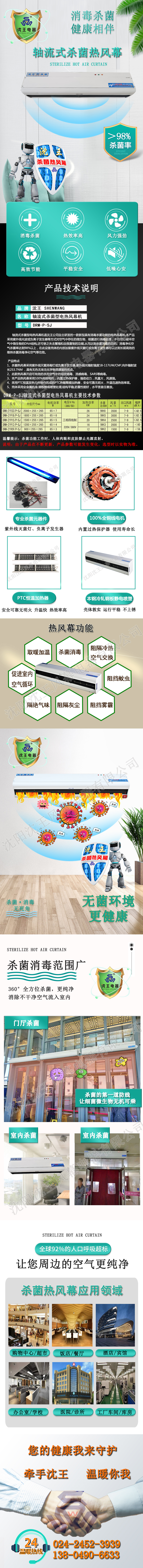 簡介:轴流式杀菌型电热风幕机是沈王公司自主研发的一款新型具有消毒杀菌的电热风幕机,本产品采用紫外线光波或负离子发生器等方式对空气中存在的微生物、细菌进行消毒处理。